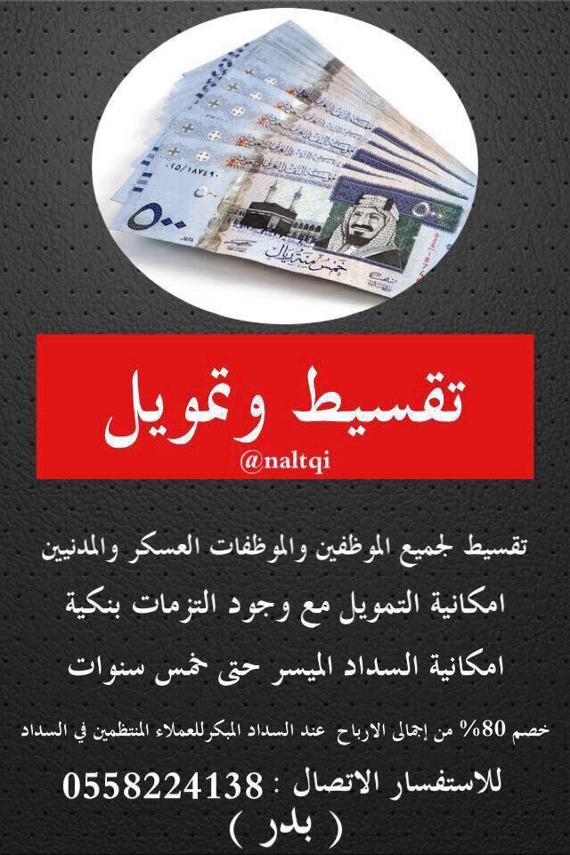 تقدم بطلب تمويل اليوم واحصل على تمويل حتى بوجود التزام بنكي او عقاري مبالغ من ٥،٠٠٠ الى ٢٥٠،٠٠٠ والى ١٠٠،٠٠٠ بدون كفيل لبعض القطاعات والتخصصات عروض خاصه للقطاعات الحكومية والخاصه للاستفسار والطلب :الشرقية بدر سعد 0558224138 من جميع مناطق المملكة ابو احمد 0558685005 تمويل شخصي تمويل بدون تحويل راتب تمويل اسلامي تمويلمتابعة قراءة “احصل على تمويل مع وجود التزام بنكي”